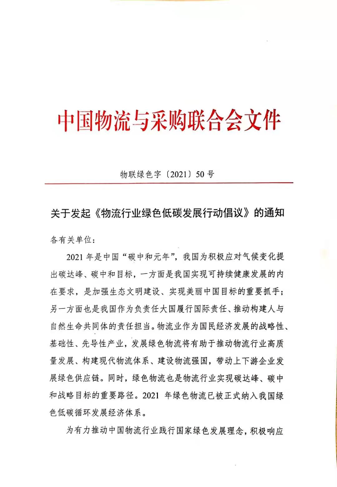 關(guān)于發(fā)起《物流行業(yè)綠色低碳發(fā)展行動(dòng)倡議》的通知