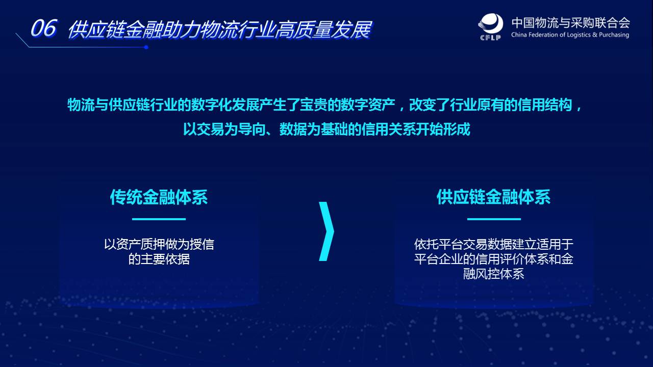 物流與供應鏈行業的數字化發展產生了寶貴的數字資產,改變了行業原有的信用結構,以交易為導向、數據為基礎的信用關系開始形成。在傳統金融體系中,金融機構均以資產質押做為授信的主要依據。而供應鏈金融模式下,依托交易數據建立信用評價體系和金融風控體系是解決長期以來物流企業,特別是中小規模平臺型物流企業融資難問題的有效手段。因此,“信用+供應鏈金融”為物流與供應鏈的發展帶來新的機遇,助力行業高質量發展。