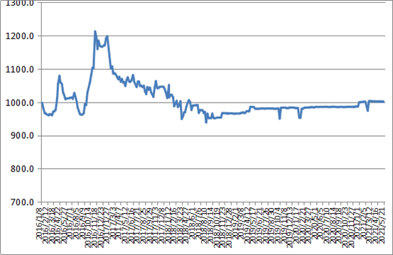 圖1 2016-2021年各周中國公路物流運價指數