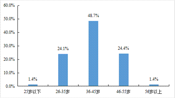2.1 調查顯示,貨車司機年齡總體偏大。目前貨車司機的年齡集中在36-45歲之間,占被調查貨車司機的48.7%;46歲以上貨車司機占比為25.8%。35歲以下司機占比為25.5%,其中25歲以下司機僅為1.4%。司機年齡分布情況較2016年《貨車司機從業狀況調查報告》(以下簡稱2016年調查)明顯向中老年齡段上移,年輕貨車司機占比明顯下滑。