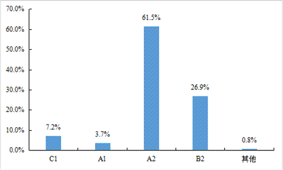 2.6 調查顯示,被調查貨車司機駕駛取得駕照類型以A2為主,占比為61.5%;其次為B2駕照類型占比為26.9%;C駕照類型占比為7.2%。隨著車輛大型化趨勢,持有A2駕照的貨車司機日益成為主流。目前,駕駛牽引車需要A2駕照,必須在獲得B2駕照基礎上增駕,無法直接報考申領,且在實習期駕駛的機動車不得牽引掛車。因取照時間成本較高,也是難以吸引年輕從業者進入的重要原因之一。目前,一些汽車生產廠家推出了自動擋牽引車,但是也要申領A2駕照。