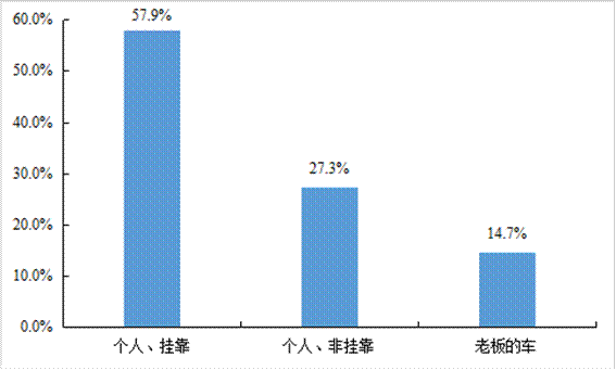 3.10 在貨車司機駕駛車輛中,有85.2%的車輛為個人車輛,其中57.9%的車輛為掛靠車輛;僅有14.7%的車輛為老板的車輛。司機違規掛靠經營問題仍然沒有得到緩解。