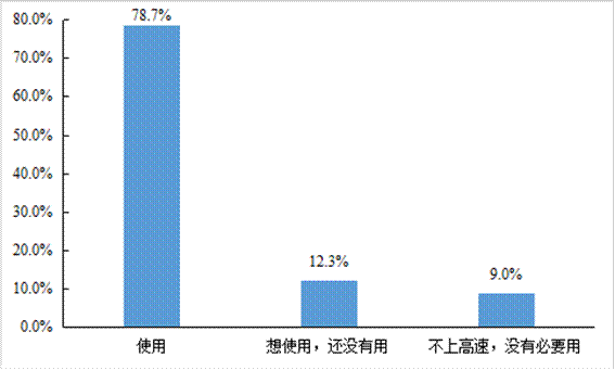 4.2 有關部門大力推廣貨車ETC收費。調查顯示,78.7%的貨車司機使用貨車ETC;還有12.3%的貨車司機想使用貨車ETC,但是目前還沒有使用;9%的貨車司機由于平時不上高速,所以沒有用貨車ETC。目前,一些省市高速公路出口要求貨主走專用通道并進行復秤,尚未實現貨車不停車收費。