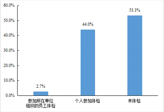5.2 調查顯示,53.3%的貨車司機未參加體檢,健康保障水平較差。44%的貨車司機自費進行體檢,僅有2.7%的貨車司機參加所在單位組織的員工體檢。
