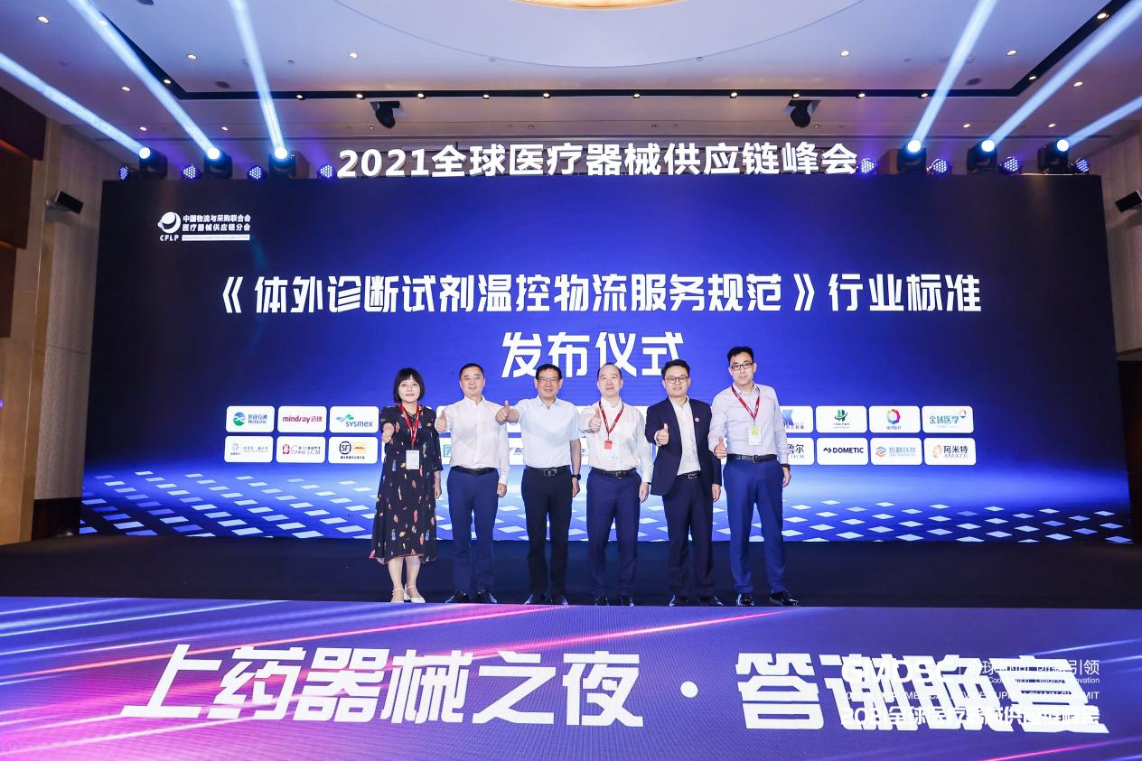 6月24日,由中國物流與采購聯合會主辦、中國物流與采購聯合會醫療器械供應鏈分會承辦的2021全球醫療器械供應鏈峰會在上海舉辦。會議期間舉行了《體外診斷試劑溫控物流服務規范》行業標準發布儀式,中國物流與采購聯合會副會長兼秘書長崔忠付出席標準發布儀式。