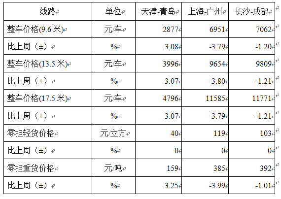 表1 本周部分線路平均價(jià)格及環(huán)比情況對(duì)比
