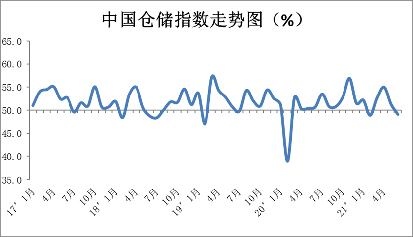 中國物流與采購聯合會發布的2021年7月份中國物流業景氣指數為50.3%,較上月回落4.3個百分點;中國倉儲指數為49.1%,較上月回落4.1個百分點。