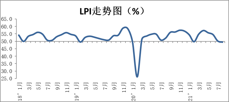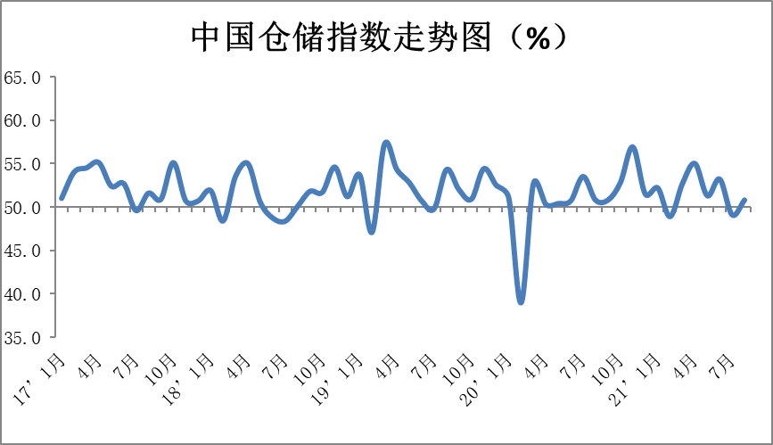 中國物流與采購聯合會發布的2021年8月份中國物流業景氣指數為49.5%,較上月回落0.8個百分點;中國倉儲指數為50.8%,較上月回升1.7個百分點。