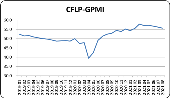 據(jù)中國物流與采購聯(lián)合會(huì)發(fā)布,2021年8月份全球制造業(yè)PMI為55.7%,較上月下降0.6個(gè)百分點(diǎn),連續(xù)3個(gè)月環(huán)比下降,自2021年3月以來,首次降至56%以下。分區(qū)域看,亞洲和歐洲制造業(yè)PMI較上月均有不同程度下降;美洲制造業(yè)PMI與上月持平,但整體水平低二季度均值;非洲制造業(yè)PMI回升至50%以上。