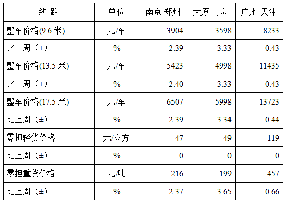 表1 本周部分線路平均價格及環(huán)比情況對比