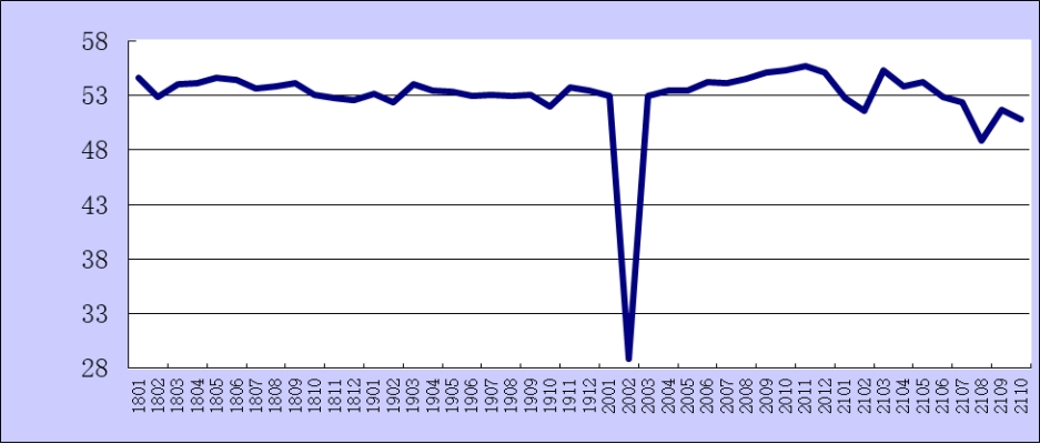2021年10月份綜合PMI產出指數為50.8%