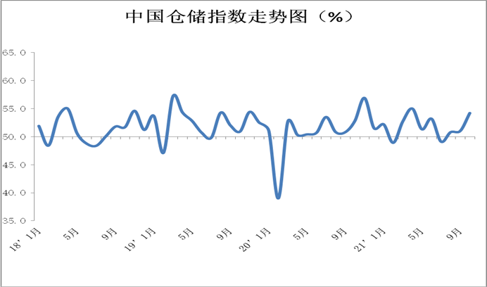 中國(guó)物流與采購(gòu)聯(lián)合會(huì)發(fā)布的2021年10月份中國(guó)物流業(yè)景氣指數(shù)為53.5%,較上月回落0.5個(gè)百分點(diǎn);中國(guó)倉(cāng)儲(chǔ)指數(shù)為54.2%,較上月回升3.2個(gè)百分點(diǎn)。