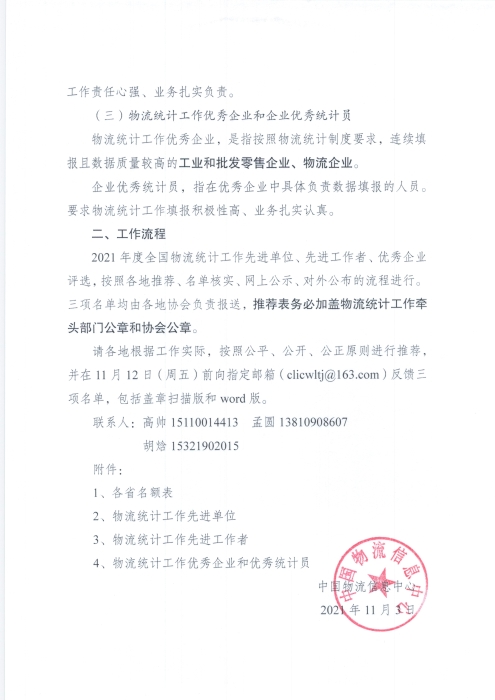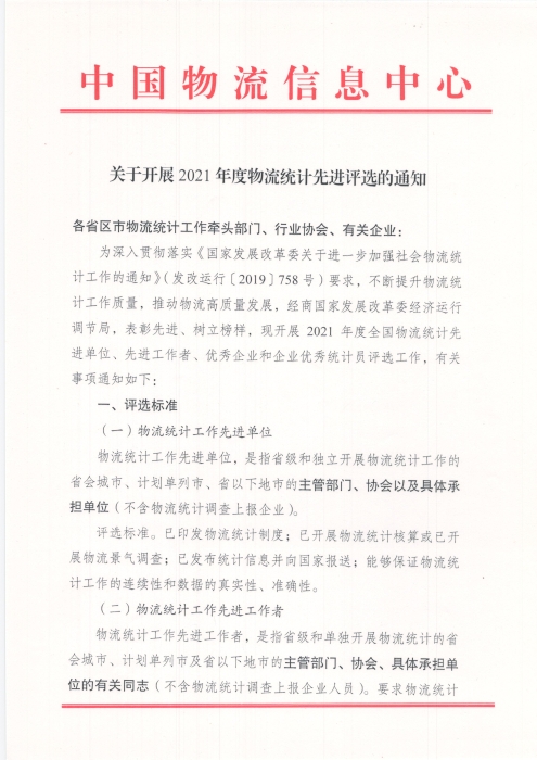 關(guān)于開(kāi)展2021年度物流統(tǒng)計(jì)工作先進(jìn)評(píng)選的通知
