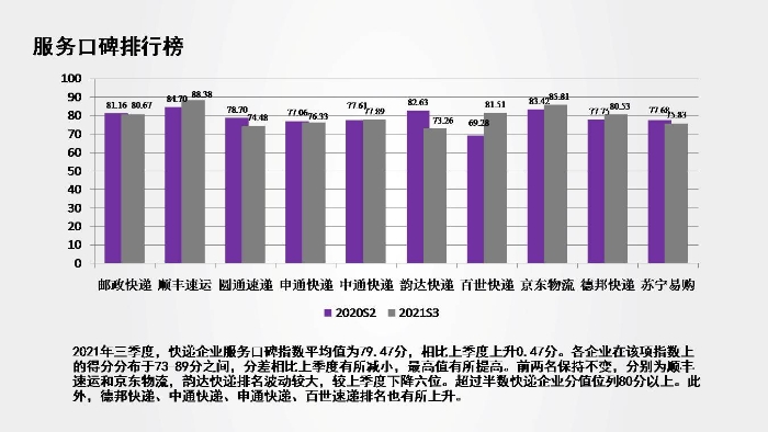 中國物流服務品牌指數(快遞物流)報告2021三季度