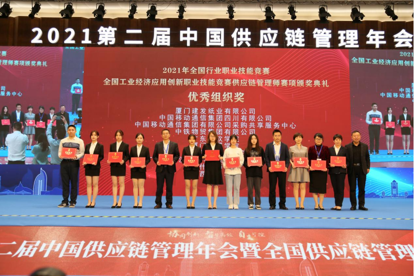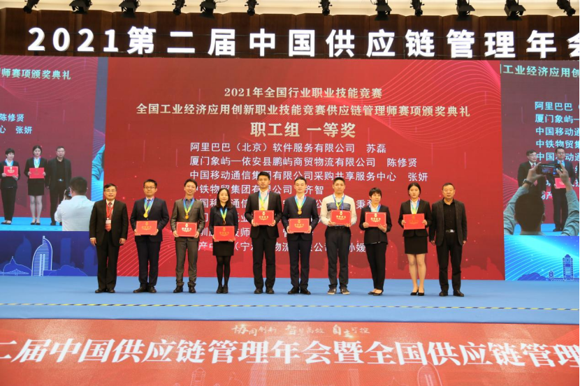 12月8日,“2021第二屆中國供應鏈管理年會暨全國供應鏈管理優(yōu)秀成果展會”在福建廈門召開。期間,由中國就業(yè)培訓技術指導中心、中國工業(yè)經濟聯(lián)合會主辦,中國物流與采購聯(lián)合會承辦的“2021年全國行業(yè)職業(yè)技能競賽——全國工業(yè)經濟應用創(chuàng)新職業(yè)技能競賽供應鏈管理師賽項閉幕式暨頒獎典禮”舉行。中國物流與采購聯(lián)合會副會長任豪祥,中國工業(yè)經濟聯(lián)合會黨委書記執(zhí)行副會長兼秘書長、國家制造強國建設戰(zhàn)略咨詢委員會委員、國家新材料產業(yè)發(fā)展專家咨詢委員會專家、“一帶一路”工商協(xié)會聯(lián)盟秘書長熊夢,上海海事大學原校長、全國物流教指委主任黃有方,東南大學教授、全國物流教指委副主任趙林度,廈門國貿控股集團有限公司黨委委員、副總裁蔡瑩彬,廈門象嶼集團有限公司紀委委員、廈門象嶼股份有限公司黨委委員、紀委書記、副總經理范承揚等領導、專家出席了頒獎典禮。