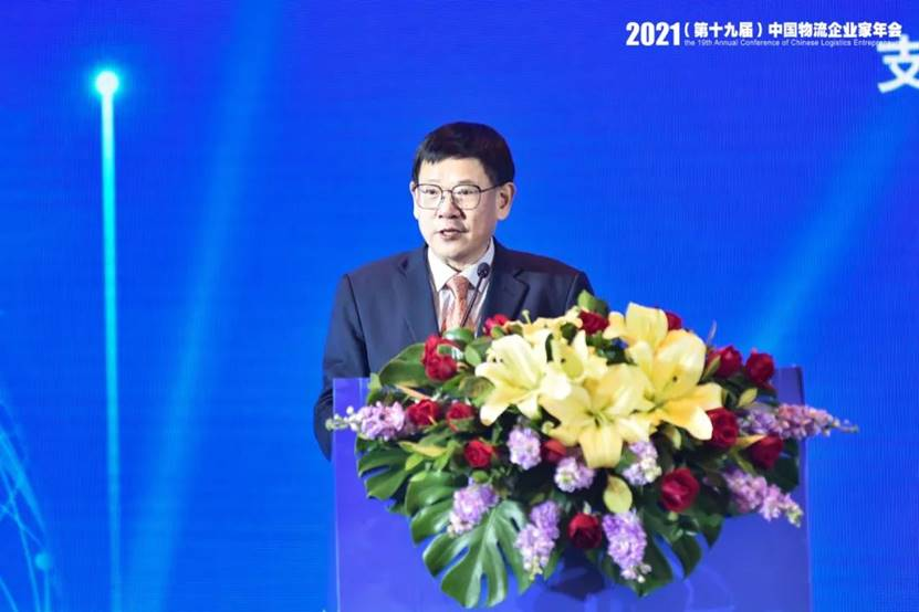 何黎明在致辭中表示,2021年是黨和國家歷史上具有里程碑意義的一年。我們隆重慶祝中國共產黨成立一百周年,沉著應對百年變局和世紀疫情,實現‘十四五’良好開局。何黎明提出,在新的一年里,隨著國家‘十四五’規劃進入全面實施階段,投資、消費和外貿的物流需求將持續恢復。預計全年社會物流總額將保持10%-15%的增長幅度。在新的一年里,我們將堅持穩字當頭、穩中求進,加快推動現代物流體系建設,形成內外聯通、安全高效的物流網絡,實現現代物流質的穩步提升和量的合理增長,培育壯大具有國際競爭力的現代物流企業,引領現代物流體系建設邁入新征程。