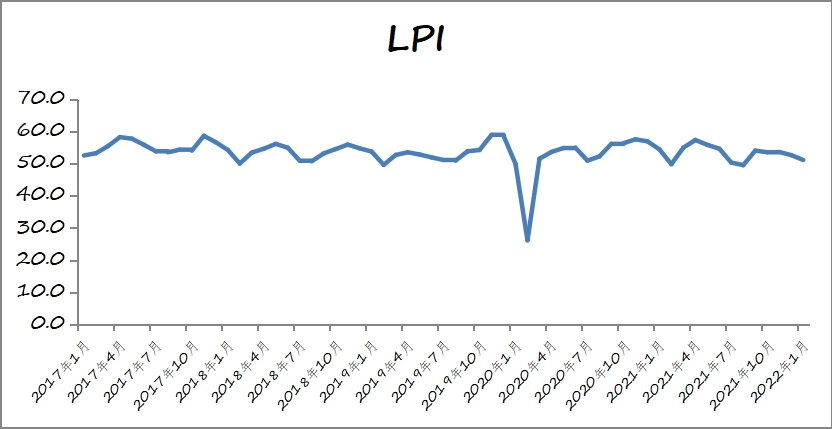 中國物流與采購聯合會發布的2022年1月份中國物流業景氣指數為51.1%,較上月回落1.5個百分點。從各分項指數的變化看,反映供需的業務總量指數、新訂單指數繼續放緩,但仍保持在50%以上;資金周轉、平均庫存、設備利用率、從業人員等反映企業運營情況的主要指數有所回調,但與往年同期相比回調幅度明顯偏小,顯示出在歲末年初需求放緩、多點疫情散發沖擊形勢下,物流業運行仍保持較強韌性,對實體經濟和抗擊疫情發揮了較好暢通保障支撐作用。