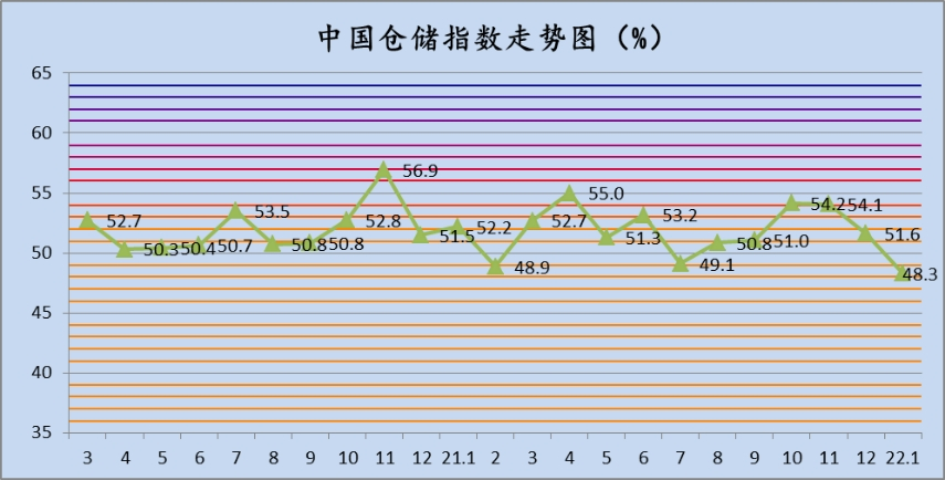 中國物流與采購聯合會與中儲發展股份有限公司聯合調查的中國倉儲指數2022年1月份為48.3%,較上月下降3.3個百分點,落入榮枯線以下。各分項指數中,新訂單指數、收費價格指數、業務利潤指數、業務活動預期指數指數較上月有所回升,其余指數均有不同程度的回落。