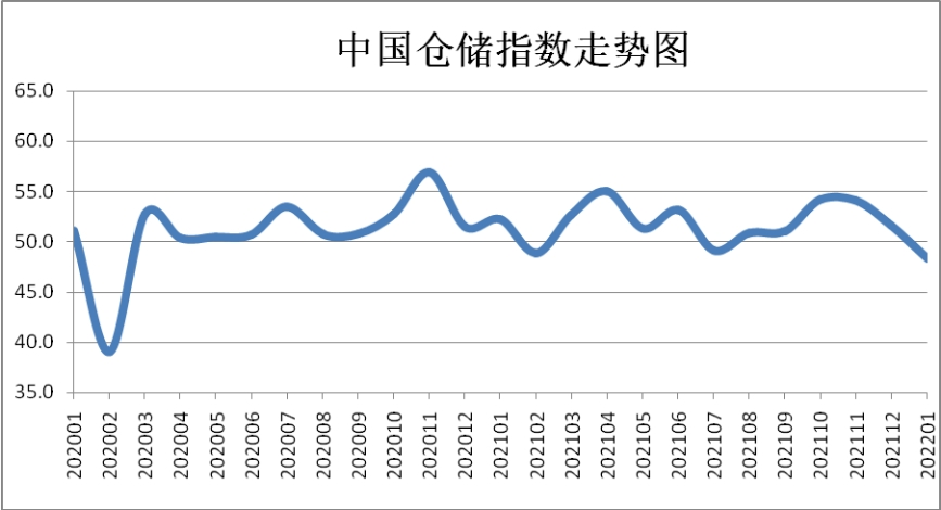 中國物流與采購聯合會和中儲發展股份有限公司聯合調查的中國倉儲指數,2022年1月份為48.3%,較上月下降3.3個百分點,時隔五個月再次落入50%以下的收縮區間,顯示倉儲行業運行壓力較前期有所加大。從分項指數看,新訂單、業務量、設施利用率、收費價格及業務活動預期等主要分項指數均保持在榮枯線以上,而期末庫存、平均庫存周轉次數指數落入榮枯線以下,其中期末庫存指數回落幅度較大,達到8.8個百分點。具體來看,有以下幾個特點: