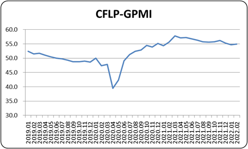 據中國物流與采購聯(lián)合會發(fā)布,2022年2月份全球制造業(yè)PMI為54.9%,較上月小幅上升0.2個百分點,連續(xù)2個月穩(wěn)定在54%以上。分區(qū)域看,美洲和非洲制造業(yè)PMI較上月有所上升,亞洲和歐洲制造業(yè)PMI較上月有所下降。