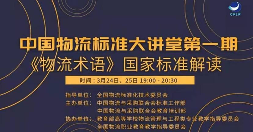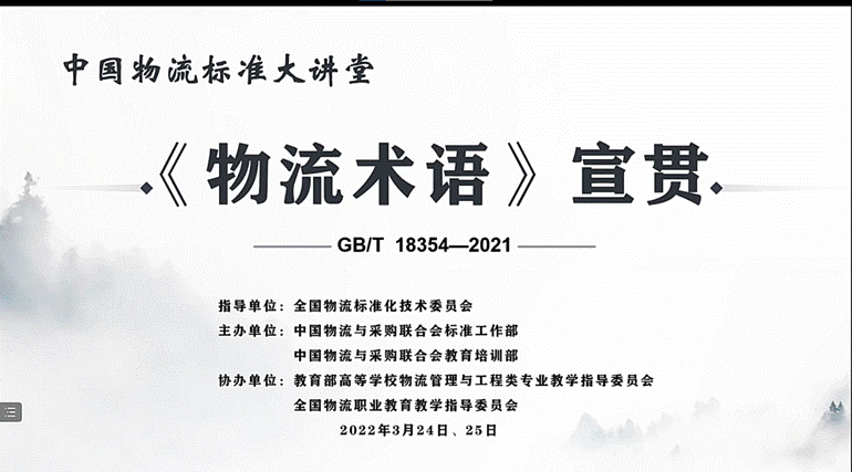 2022年3月24日、25日,“中國物流標準大講堂第一期——《物流術語》國家標準宣貫活動”在線上舉辦。大講堂由全國物流標準化技術委員會指導,中國物流與采購聯合會標準工作部、教育培訓部主辦,教育部高等學校物流管理與工程類專業教學指導委員會、全國物流職業教育教學指導委員會協辦。活動吸引了近7000人觀看直播。