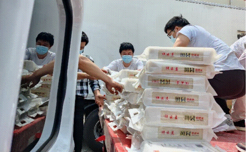 此次需要卸貨的是兩輛裝載米、面、雞蛋、蔬菜等物資的大型貨車。志愿者們分工協作,將一箱箱物資從貨車卸下,整箱貨物拆分成小單元,分類、分區碼放。當天氣溫一度突破30℃,志愿者們帶著口罩、手套等防護用品,在悶熱的環境下持續工作7個小時,即便沉重的貨物磨破皮膚,烈日曬紅臉頰,大家依然干勁滿滿。志愿們紛紛表示:“想到可以為防疫出一份力,心里都是開心的。”