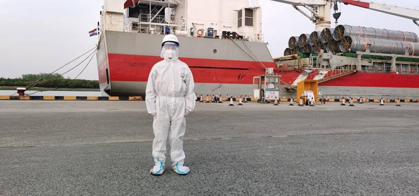 3月23日,浦東外代“5年資深”外勤鄭毅前往閔行龍吳碼頭工作,由于居住小區被封閉,于是暫住在浦西的公司附近酒店。27日他剛好趕往臨港接船,得知浦東即將開始封閉管控,于是被“封印”在浦東,至今已經有一個多月沒有回家,期間順利操作10條船舶。