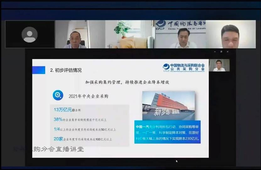 5月18日下午,由中國物流與采購聯(lián)合會(huì)公共采購分會(huì)、采購與供應(yīng)鏈管理專委會(huì)主辦,湖北省物流與采購聯(lián)合會(huì)、陜西省物流與采購聯(lián)合會(huì)、廣東省公共資源交易聯(lián)合會(huì)、安徽省公共資源交易協(xié)會(huì)、山東省公共資源交易協(xié)會(huì)、四川省公共資源交易協(xié)會(huì)、河北省公共資源交易行業(yè)協(xié)會(huì)、湖南省政府采購協(xié)會(huì)、遼寧省政府采購協(xié)會(huì)共同協(xié)辦的“采購公益課堂”系列直播活動(dòng)的首期“云”課堂成功推出,來自全國各地央企、國企采購部門的同仁等齊聚云端、在線交流,逾7000余名網(wǎng)友收看了此次直播。