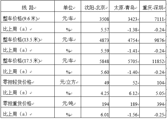 表1 本周部分線路平均價(jià)格及環(huán)比情況對(duì)比