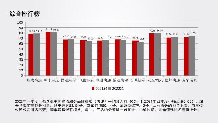 中國物流服務品牌指數(快遞物流)報告2022年一季度