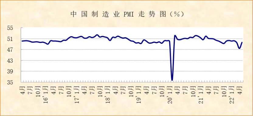 中國物流與采購聯合會、國家統計局服務業調查中心發布的2022年5月份中國制造業采購經理指數(PMI)為49.6%,較上月上升2.2個百分點,接近2022年一季度制造業PMI均值,表明經濟運行趨于恢復。從分項指數變化來看,產業鏈供應鏈運行逐步疏通,企業生產和市場需求有所回補,產業恢復協同性較好,大中小企業運行均有恢復。但當前經濟恢復仍不充分,市場需求整體不足,企業生產經營仍未完全回歸正常。