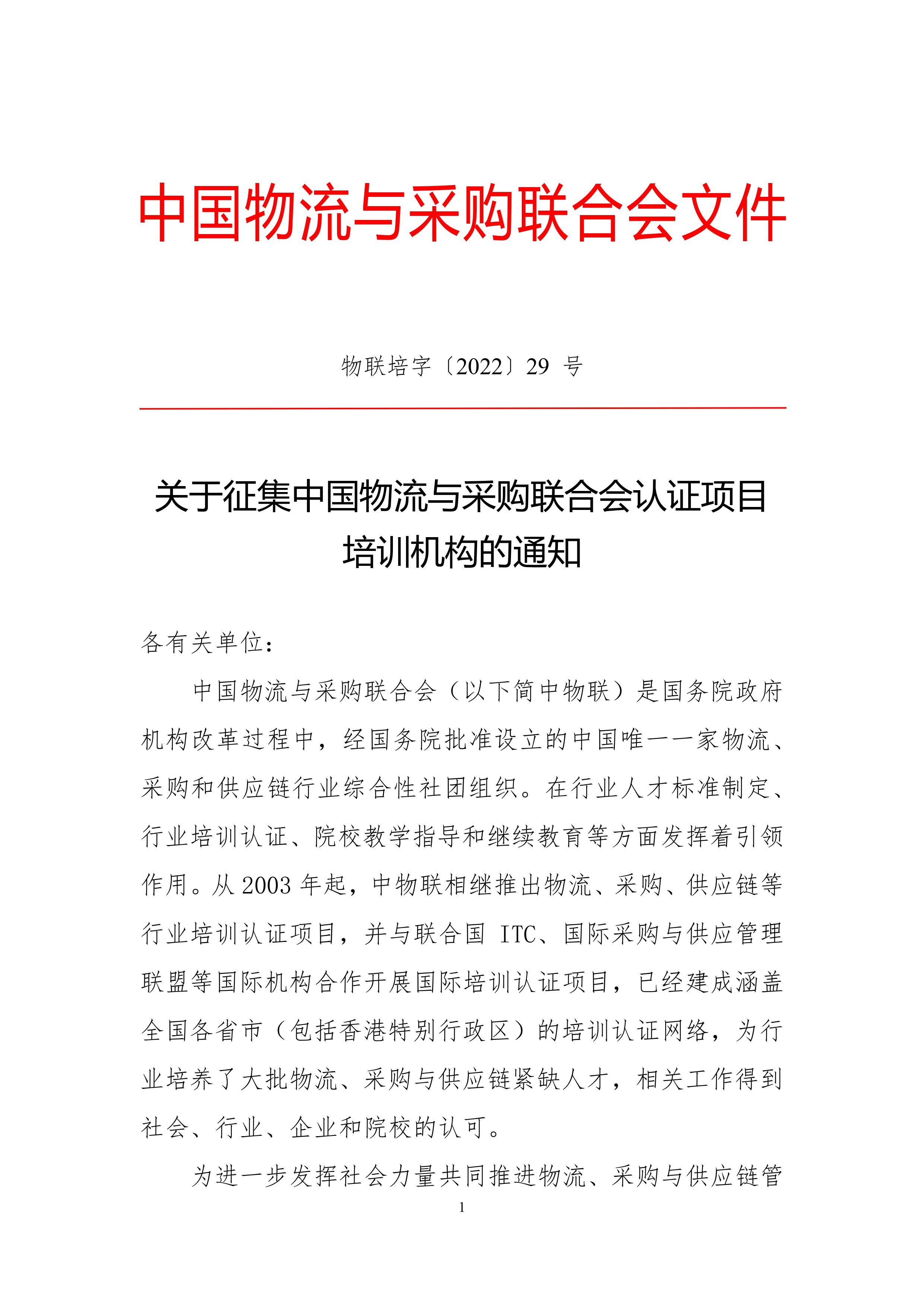 關于征集中國物流與采購聯合會培訓認證項目培訓機構的通知v2.0.pdf