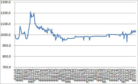 圖1 2016-2022年各周中國公路物流運價指數(shù)