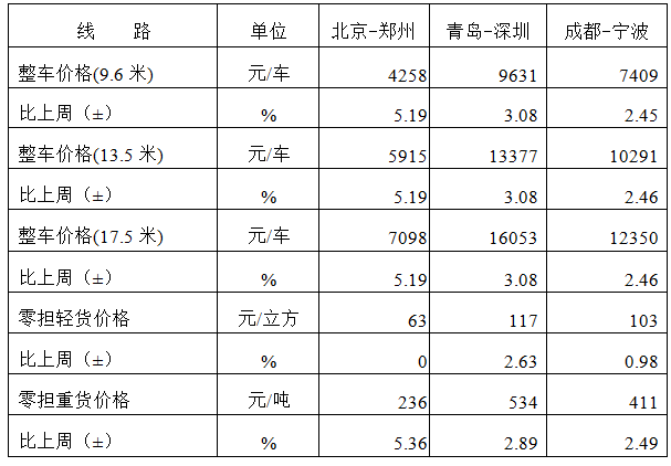 表1 本周部分線路平均價格及環(huán)比情況對比
