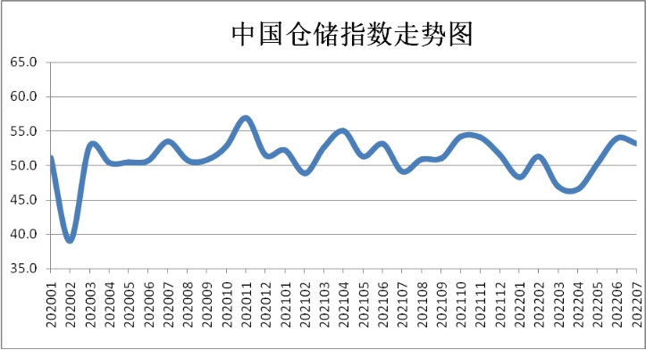 中國物流與采購聯合會和中儲發展股份有限公司聯合調查的中國倉儲指數,2022年7月份為53.1%,雖然較上月回落0.8個百分點,但仍保持在較高水平,為年內次高點。各分項指數均保持在榮枯線以上,業務利潤、期末庫存、業務活動預期等指數回升幅度較為明顯。指數變化情況表明,得益于各項穩增長、物流保通保暢政策的持續落實,倉儲行業運行保持較好恢復態勢。具體來看,有以下幾個特點: