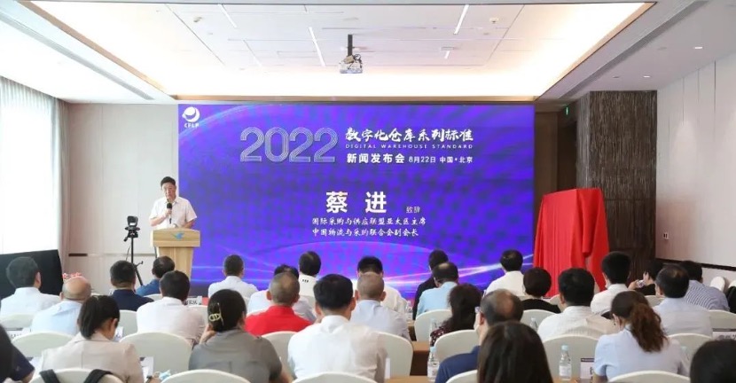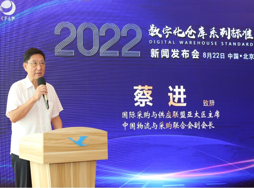 2022年8月22日下午,在全國物流標準化技術委員會指導下,由中國物流與采購聯合會主辦,中國物流采購聯合會物聯網技術與應用專業委員會承辦的“數字化倉庫系列行業標準頒布新聞發布會”在北京召開。中國物流與采購聯合會副會長蔡進出席并講話。