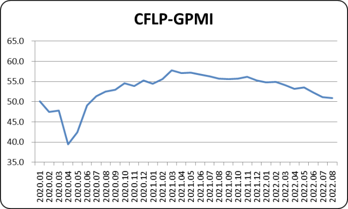 2022年8月份,非洲制造業PMI為50.4%,較上月上升1.3個百分點,結束連續2個月環比下降走勢。指數止跌并升至50%以上,表明非洲制造業結束連續下行趨勢,有所回升。從主要國家看,隨著疫情及全國范圍內停電影響有所緩解,南非制造業加快恢復,其制造業PMI較上月明顯上升,是帶動非洲制造業回升的主要因素。