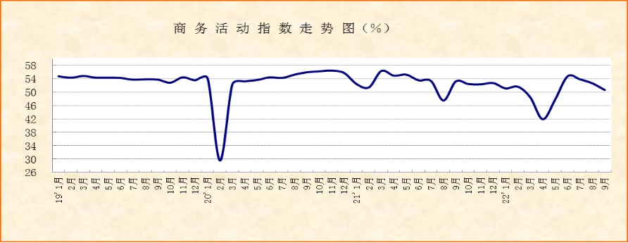 中國物流與采購聯合會、國家統計局服務業調查中心發布的2022年9月份中國非制造業商務活動指數為50.6%,較上月下降2個百分點,連續3個月環比下降;新訂單指數為43.1%,較上月下降6.7個百分點。綜合指數變化,商務活動指數和新訂單指數較上月均有較為明顯下降,非制造業供需增速較上月有明顯放緩,恢復力度繼續趨弱,需求收縮壓力尤為明顯。