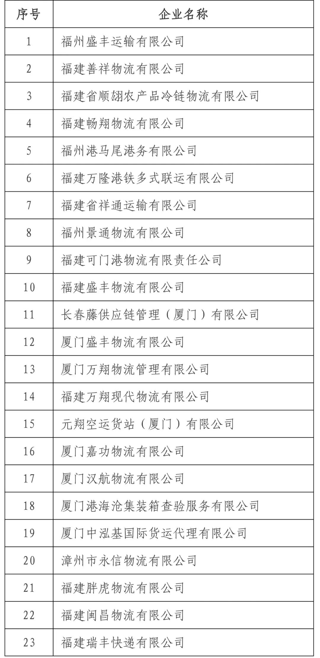 根據省工信廳等15部門《關于進一步促進服務型制造發展的實施意見》(閩工信法規〔2021〕46號),在省、市物流協會推薦基礎上,經研究,確定福州盛豐運輸有限公司等64家企業為第二批國家A級物流企業培育對象。請指導列入培育的企業進一步完善設施建設、豐富服務模式、提升服務能力,盡快達到國家A級物流企業的認定條件。