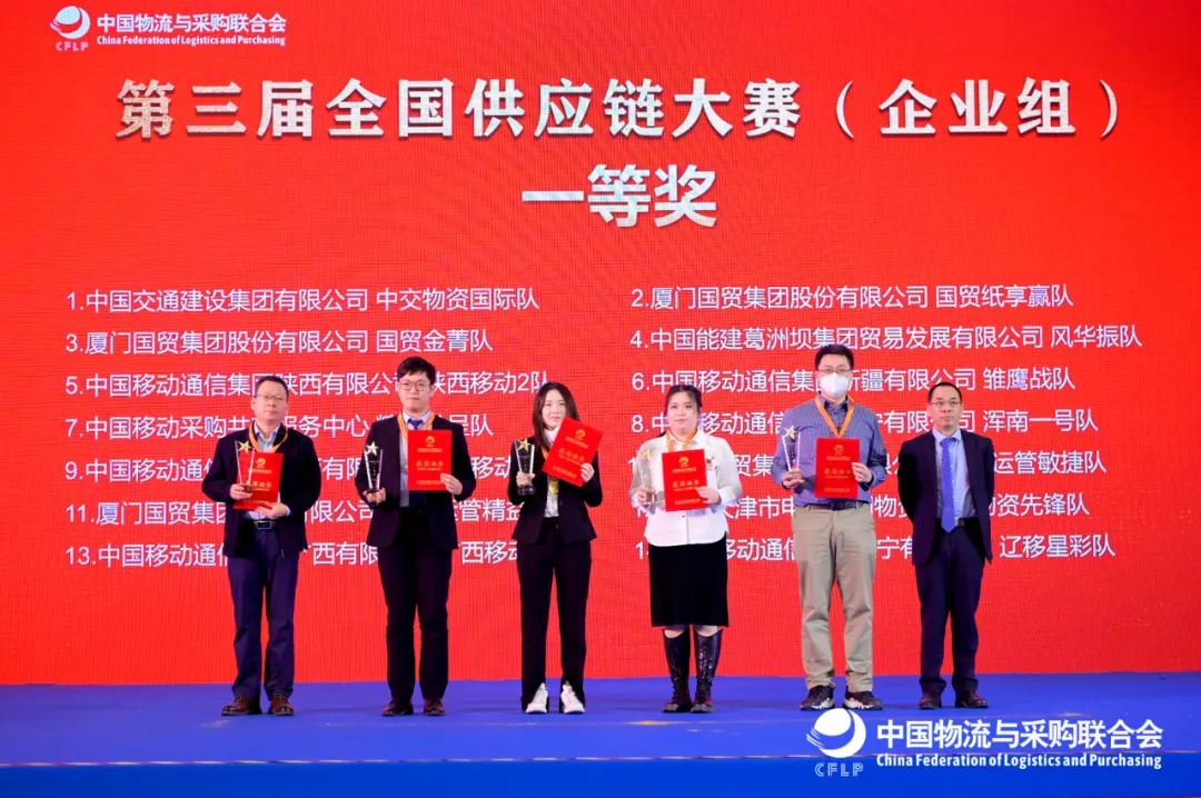 12月21日,由中國物流與采購聯(lián)合會主辦,中國物流與采購聯(lián)合會采購與供應(yīng)鏈管理專業(yè)委員會和中國物流與采購聯(lián)合會教育培訓(xùn)部承辦的“第三屆全國供應(yīng)鏈大賽(企業(yè)組)決賽”在廈門國際會展中心舉行。在“2022第三屆中國供應(yīng)鏈管理年會”主論壇上,舉行了頒獎儀式。中國物流與采購聯(lián)合會副會長任豪祥、副會長蔡進(jìn)、會長助理胡大劍出席頒獎儀式并為獲獎代表頒獎。決賽共產(chǎn)生了一等獎14名,二等獎 21名,三等獎35名,以及8個最佳組織獎。
