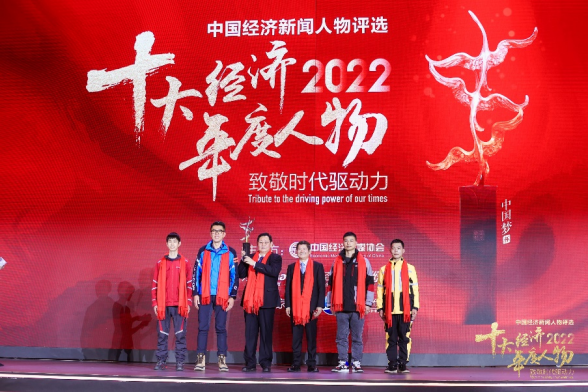 2023年1月6日, “中國夢杯?中國經濟新聞人物——2022十大經濟年度人物”頒獎盛典在京召開。本屆評選活動是由中國經濟傳媒協會主辦,新浪財經、第一財經聯合承辦,從“創新性、顛覆性、前瞻性、成長性、持續性”五個維度出發,評選2022年引領商業之美、產業創變、時代之潮的十大經濟年度人物和經濟年度人物新銳獎得主。
