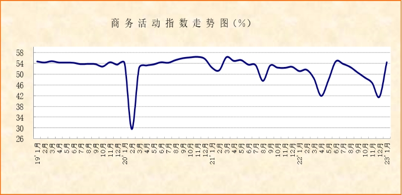 中國物流與采購聯合會、國家統計局服務業調查中心發布的2023年1月份中國非制造業商務活動指數為54.4%,較上月上升12.8個百分點,結束連續6個月下降走勢;新訂單指數為52.5%,較上月上升13.4個百分點,結束連續4個月下降走勢。商務活動指數和新訂單指數重回50%以上,且環比升幅均超過10個百分點,表明非制造業供需呈現加速回升跡象。社會往來活動和人員流動的有序展開疊加春節需求集中釋放促成了非制造業的回升。