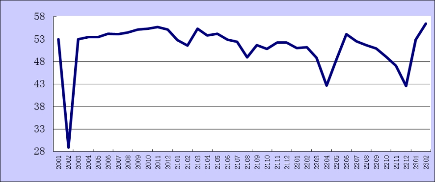 2023年2月份綜合PMI產出指數為56.4%