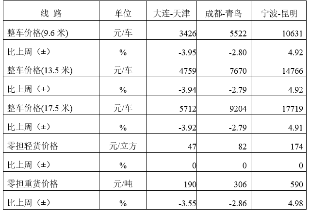 表1 本周部分線路平均價格及環(huán)比情況對比