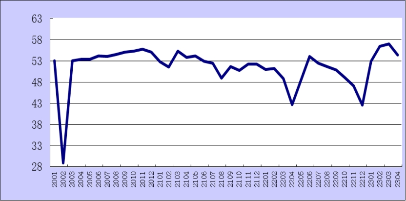 2023年4月份綜合PMI產出指數為54.4%