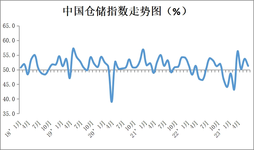 中國物流與采購聯合會發布的2023年5月份中國物流業景氣指數為51.5%,較上月回落2.3個百分點;中國倉儲業指數為51.3%,較上月下降2.4個百分點。