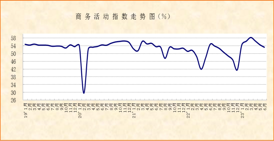 行業活動存在積極變化。細分行業數據變化顯示,6月份,基建投資、電商物流和金融相關行業活動表現良好。土木工程建筑業商務活動指數升至64%以上,新訂單指數升至53%以上,兩個指數環比升幅均超過2個百分點,顯示多地重大基建項目持續推進力度依然較強,基建發力穩增長的基礎仍在。隨著電商平臺“618”的啟動,電商消費帶動了相關物流活動的活躍,郵政業和裝卸搬運及倉儲業商務活動指數較上月明顯上升,分別在60%以上和55%以上的較高水平。金融業商務活動指數在60%以上,較上月和去年同期均有上升,顯示金融業支持實體經濟力度仍較好,逆回購操作利率和SLF利率在內的政策利率下調有助于進一步降低實體經濟融資成本。企業調查顯示,反映融資難的非制造業企業比重連續3個月在2%以下。