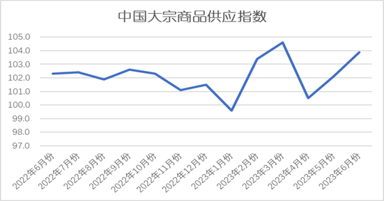 由中國物流與采購聯合會調查、發布的2023年6月份中國大宗商品指數(CBMI)為102.8%,指數連續兩個月上升,本月較上月上升2.1個百分點。各分項指數中,供應指數連續兩個月上升,銷售指數止跌反彈,庫存指數有所回落。從指數的變化情況來看,本月指數繼續上升,且供需雙側聯動上揚,特別是需求端回升力度強于供應端,令市場庫存壓力持續緩解,顯示在宏觀預期改善的刺激下,大宗商品市場需求恢復,市場人氣有所積聚,采購、生產等經營活動積極,6月份國內大宗商品市場呈現 “供需雙旺、穩中向好”的特征。對于即將到來7月份,我們仍持謹慎態度,具體表現在:在宏觀面,國內經濟復蘇較為溫和,民間投資、外貿出口和房地產等對經濟的拉動作用偏弱,預計后期政策仍有加碼空間,將對市場信心帶來提振;在需求端,高溫和多雨季節來臨,全國性的需求淡季特征趨于明顯,預計7月份需求將會出現回落;在供給端,雖然今年以來大多數的時間生產企業均處于虧損狀態,但企業減產動力不足,商品供應整體仍處于高位狀態,預計后期供應端總量即使出現回落,但供應端仍將強于需求端,市場供過于求的狀態將會持續。綜合來看,7月份大宗商品市場將會呈現供強需弱的格局,但政策托舉的預期客觀存在,在二者的博弈下,大宗商品價格將維持區間波動,整體小幅走低。