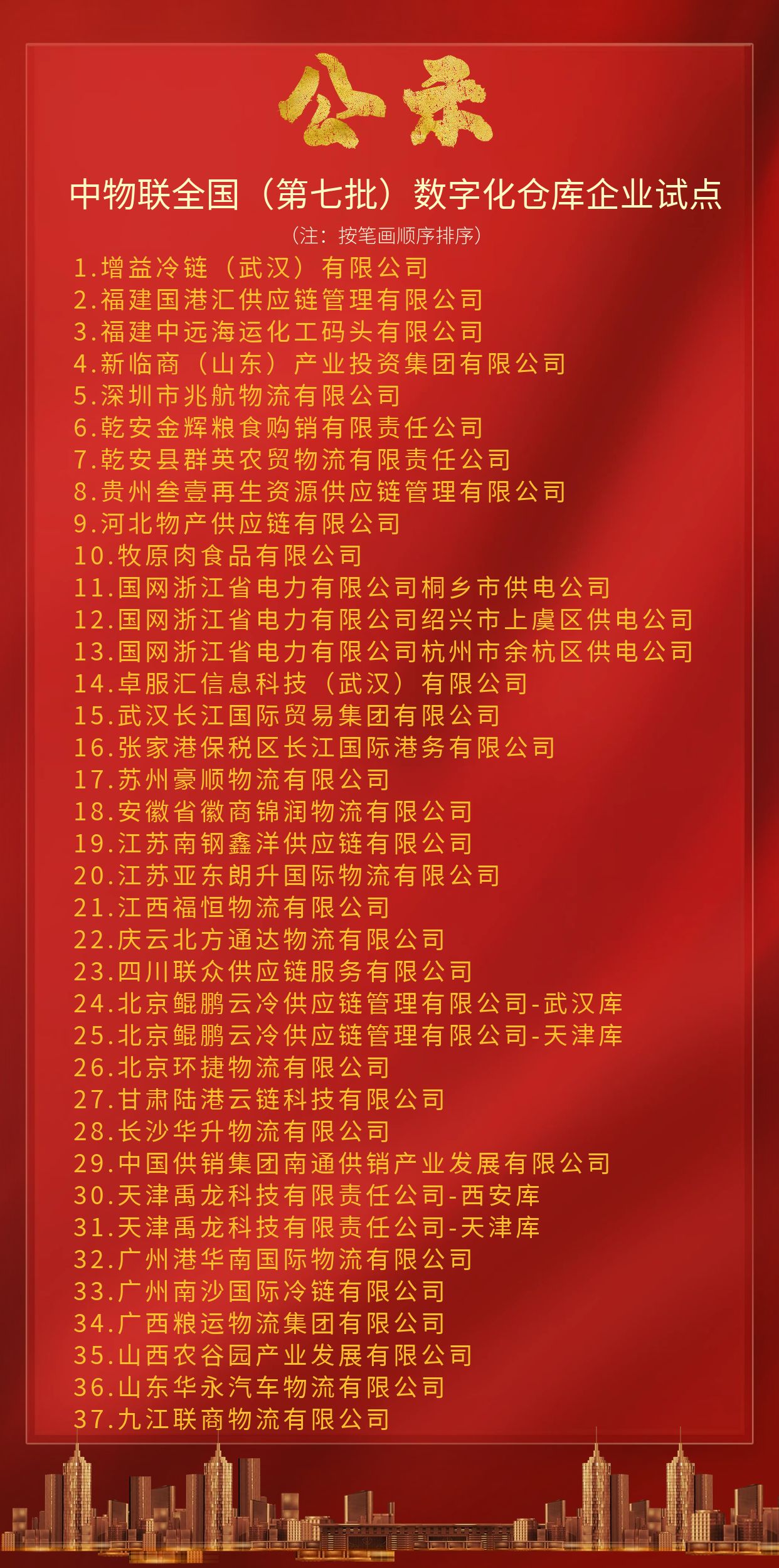 關于發布“中物聯全國數字化倉庫企業試點 (第七批)”名單的通告