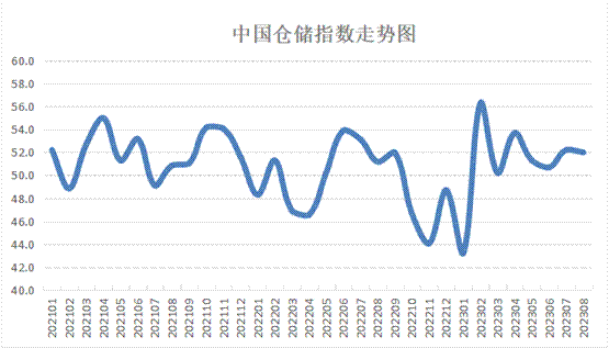 中國物流與采購聯(lián)合會和中儲發(fā)展股份有限公司聯(lián)合調(diào)查的中國倉儲指數(shù),2023年8月份為52%,較上月下降0.2個百分點,仍位于50%以上,連續(xù)七個月保持在擴(kuò)張區(qū)間,顯示倉儲行業(yè)繼續(xù)保持平穩(wěn)向好運行態(tài)勢。新訂單、收費價格、平均庫存周轉(zhuǎn)次數(shù)等指數(shù)均有回升,業(yè)務(wù)量、業(yè)務(wù)活動預(yù)期等指數(shù)也保持在榮枯線以上,顯示倉儲業(yè)務(wù)需求持續(xù)回暖,商品周轉(zhuǎn)效率繼續(xù)提高,企業(yè)生產(chǎn)經(jīng)營狀況良好,對未來預(yù)期較為樂觀。具體來看,本月指數(shù)有以下幾個特點: